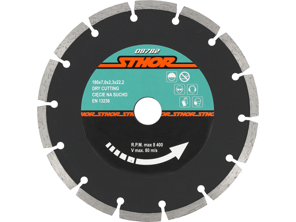 Disque diamanté pour meuleuses d'angle conçu pour le travail "à sec". Recommandé pour couper la céramique, le béton, la pierre, la brique.