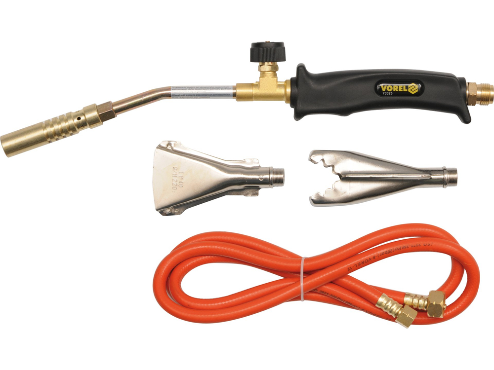 - Zestaw palników gazowych przeznaczony do do lutowania, podgrzewania, osuszania oraz prac dekarskich. Palnik, 3 dysze, wąż o długości 2m.