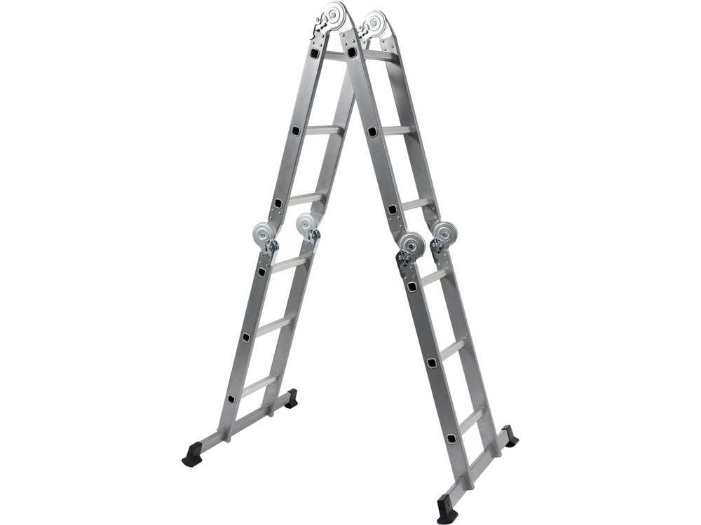 Echelle multifonction 4x3 d'une hauteur maximale de 3,4 m. Répond aux exigences de la norme européenne PN EN131 avec une capacité de charge par marche de 150 kg. Elle se compose de quatre segments reliés par des articulations solides et durables.