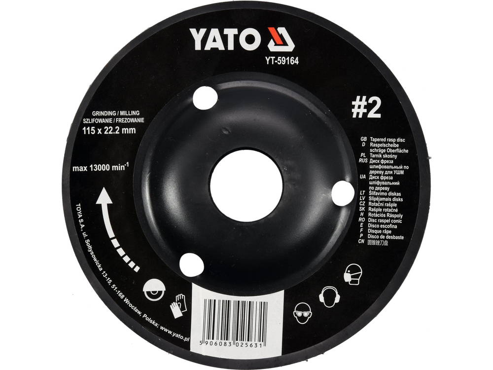 Râpe diagonale d'un diamètre de 115 mm pour le ponçage et le fraisage.