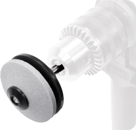 Fixer le mandrin d'affûtage au mandrin de la perceuse sur secteur ou sans fil, placer la lame dans la fente entre le corindon et la plaque de pression /plastique/, démarrer la perceuse, affûter en se déplaçant doucement le long du matériau.