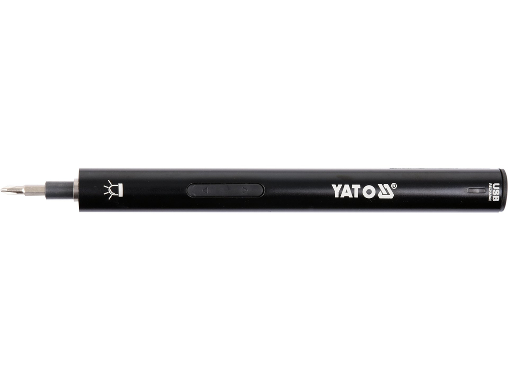 Tournevis de précision sans fil 3,6 V avec 39 embouts de Yato YT-27930 comprenant un jeu d'embouts et de rallonges, conçu pour les travaux de précision tels que la réparation d'équipements électroniques.