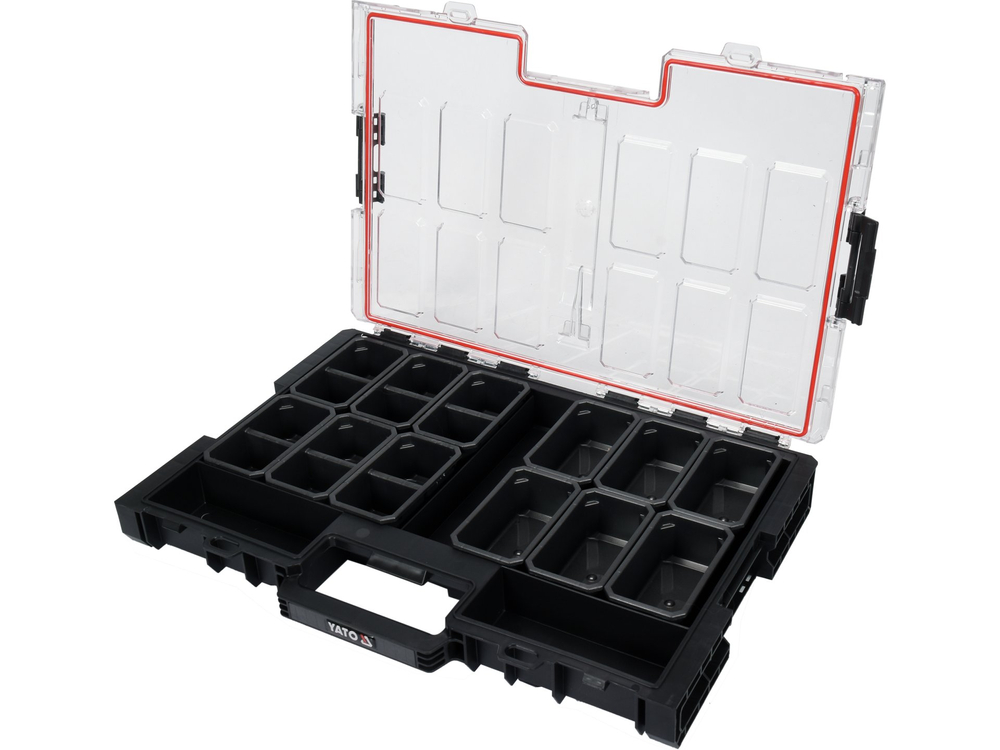 Permet de ranger et de transporter facilement de petits objets. Se connecte, entre autres, à l'organisateur de base YT-09180.