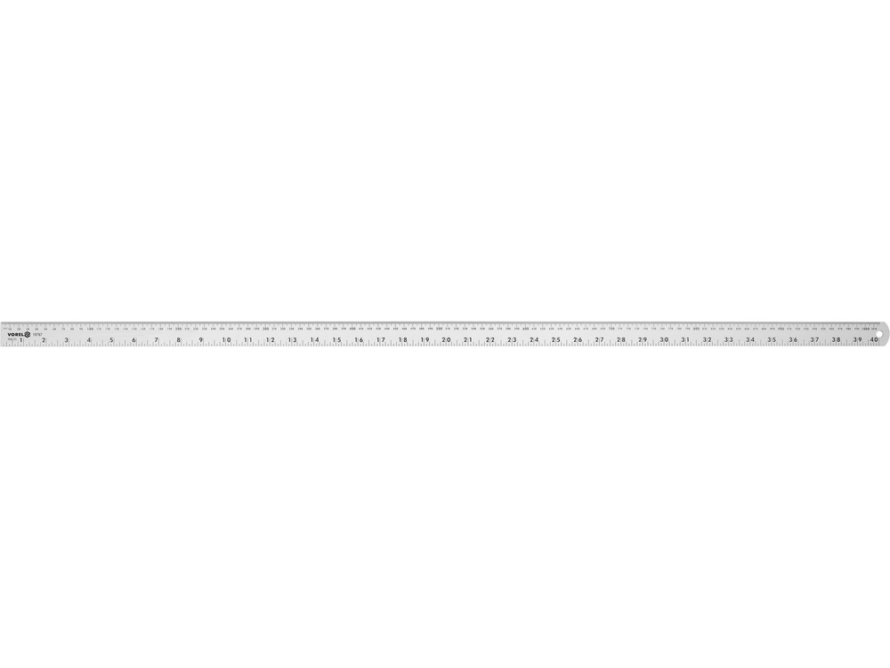 Règle rigide en aluminium d'une longueur totale de 1000 mm avec des graduations en millimètres jusqu'à 1000 mm sur le bord inférieur et en pouces jusqu'à 40" sur le bord supérieur. Conçue pour les travaux de mesure et de traçage.