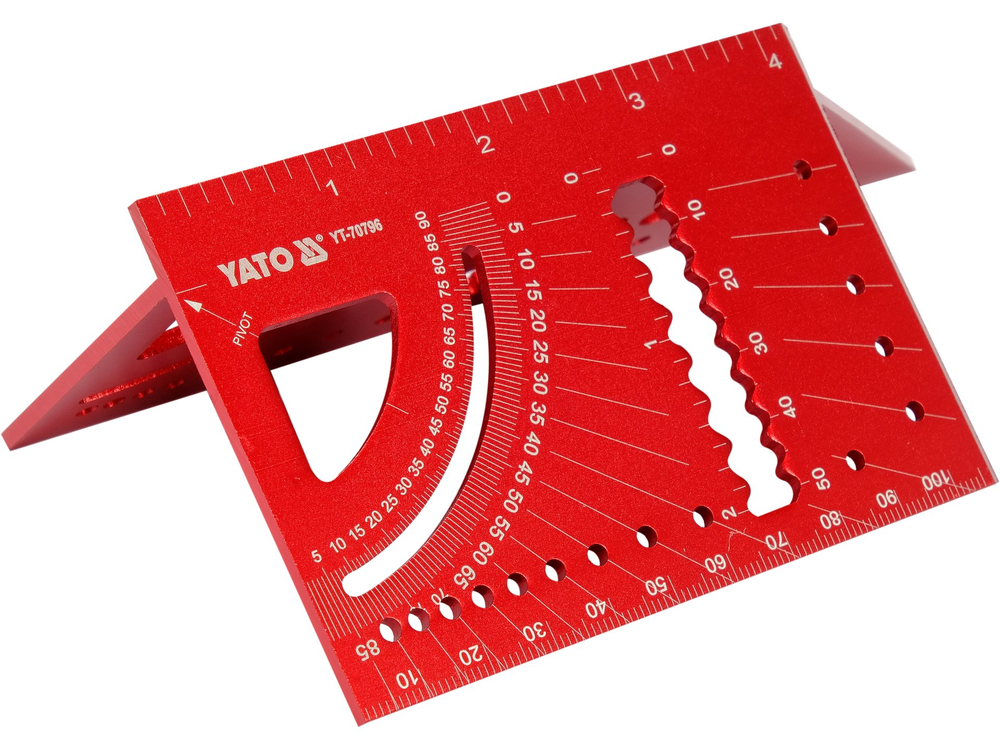 Conçu pour mesurer sur plusieurs plans à la fois, par exemple les chevrons, les lattes. Il permet en outre de mesurer des angles, de tracer clairement des lignes et de vérifier rapidement des diamètres.
