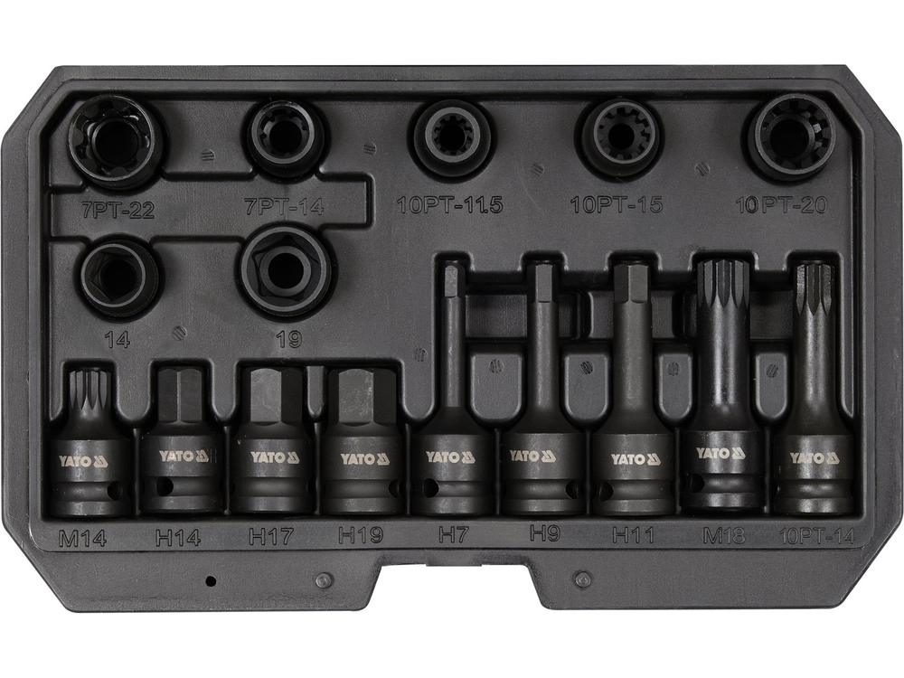 Clé à douille six pans 1/2" x6 (14 mm, 17 mm, 19 mm (L=45 mm), 7 mm, 9 mm, 11 mm (L=78 mm)), Clé à goupille cannelée 1/2” x2 (M14 (L=45 mm), M18 (L=78 mm)),