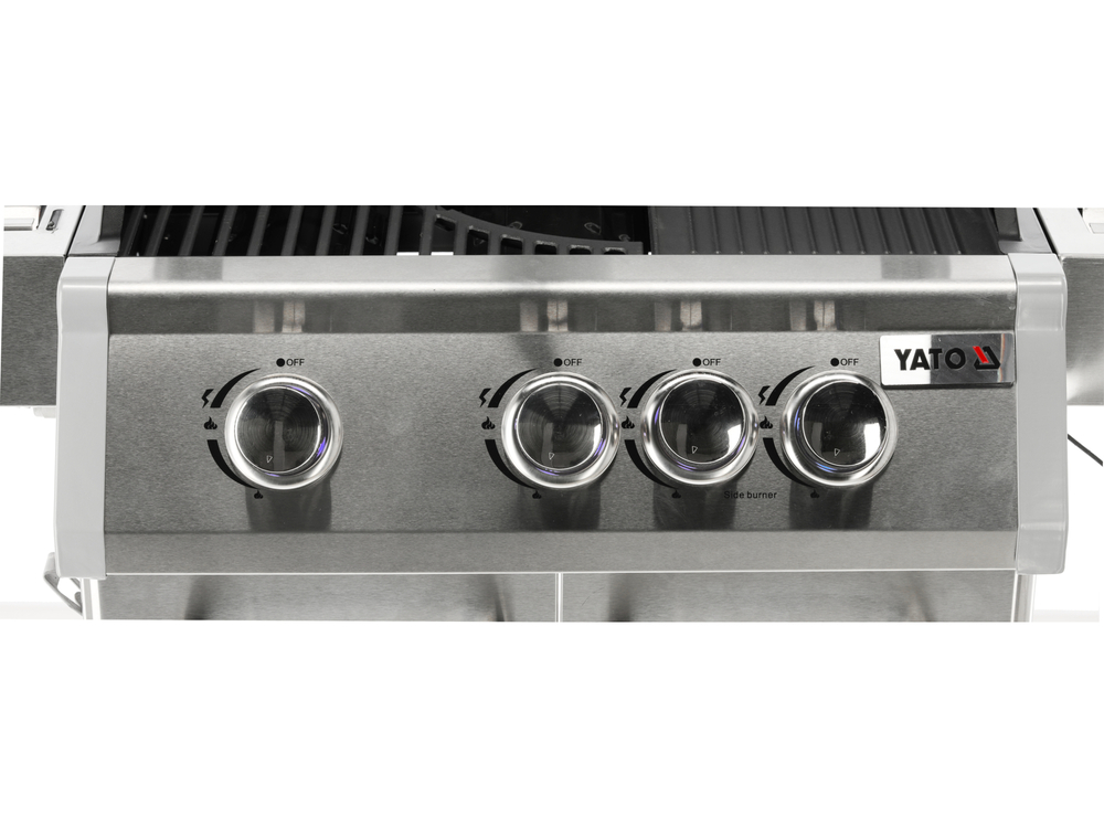 Gril à gaz YATO Itami 3+1 au design moderne en acier inoxydable.