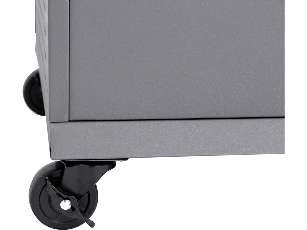 - 4 roulettes pivotantes avec frein pour faciliter le transport du gril.