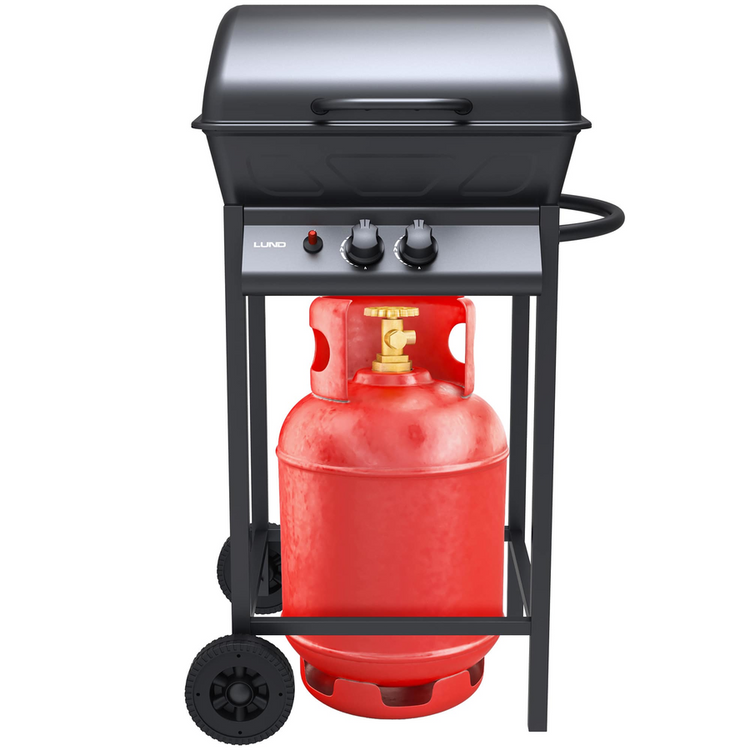 Gril à gaz à deux brûleurs pour la cuisine en plein air, avec des commandes pratiques pour une cuisson parfaite des aliments. La taille compacte du gril permet de le ranger facilement dans des espaces réduits.