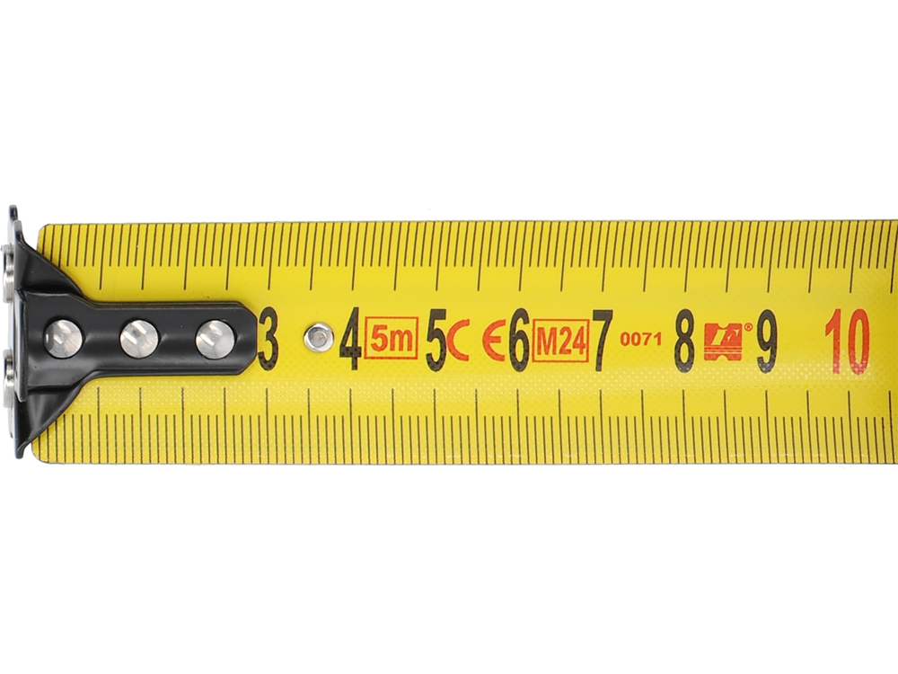 Mètre à ruban rétractable avec un ruban en acier extra-large de 32 mm d'une longueur de 5 mètres. Précision de mesure de classe II. Équipé d'une lanière courte qui peut être passée autour du poignet ou accrochée au mètre.
