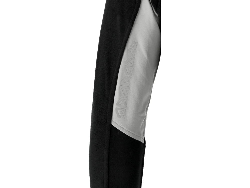 La matière principale est un polyester résistant avec une structure semblable à celle de la polaire qui maintient efficacement la chaleur du corps. La matière de l'insert est un tissu extensible et respirant à double sens. Il n'entrave pas les mouvements et est agréable à la peau.
