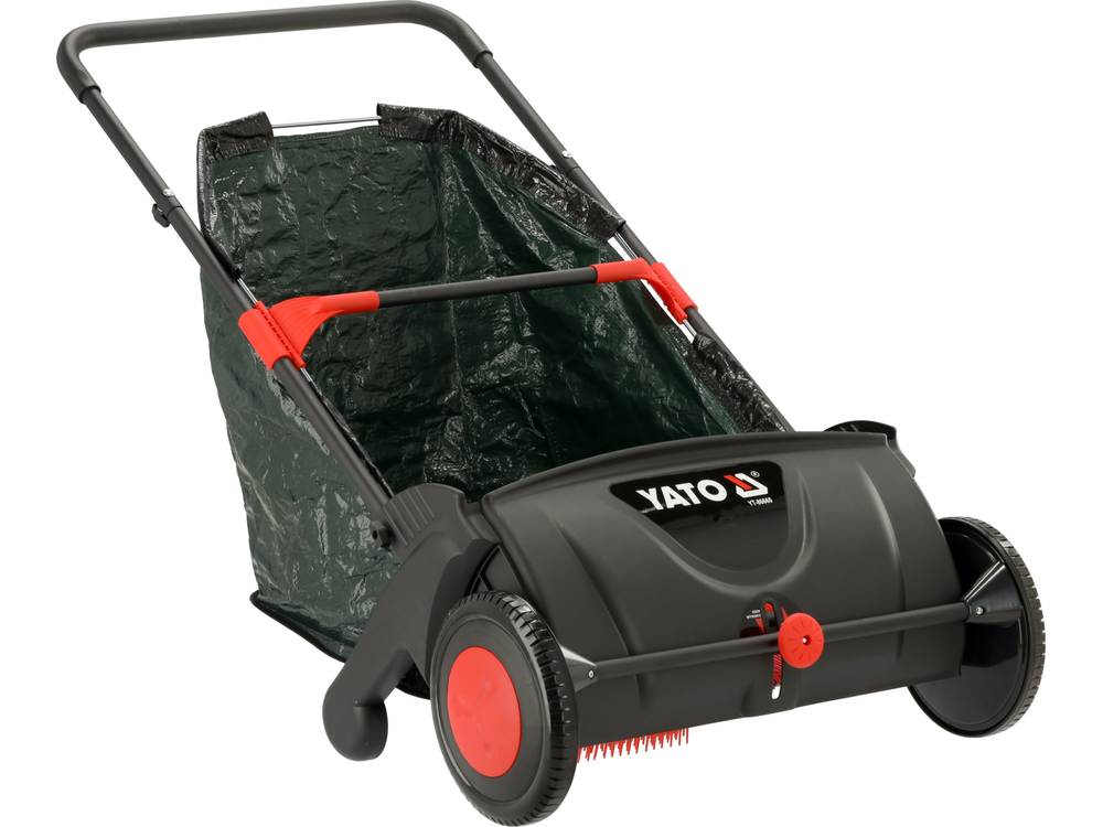 La largeur de travail de 53 cm permet de ramasser efficacement les déchets et de les déposer dans un sac de 100 litres à l'aide de quatre brosses rotatives. Grâce à la hauteur de travail réglable, l'appareil facilite la conduite sur différents types de terrains, y compris les surfaces irrégulières, inclinées ou pavées. L'utilisation du ramasseur en position verticale, sans avoir à se pencher fréquemment, augmente le confort lors de l'entretien du jardin.