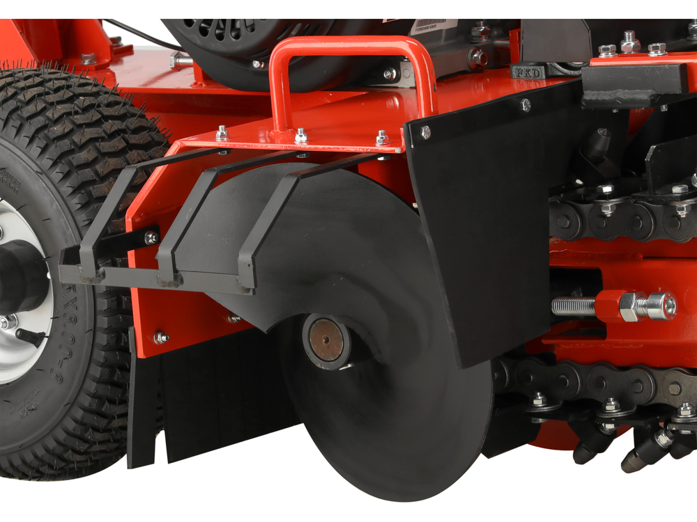 La pelle est équipée d'un mécanisme de creusement à chaîne de 100 mm de large, qui permet de travailler à une profondeur maximale de 600 mm. La construction robuste de la machine et ses paramètres de fonctionnement optimisés la rendent rapide, très efficace et facile à utiliser. Elle est idéale pour les travaux de construction, de jardinage et d'installation de câbles, de tuyaux, de systèmes de drainage et de fondations de clôtures.