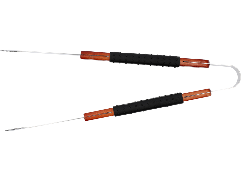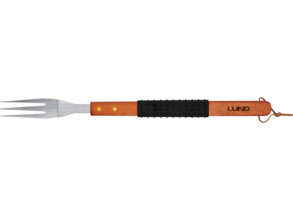 Ensemble de couverts en acier avec manche en bois utiles pour le barbecue.