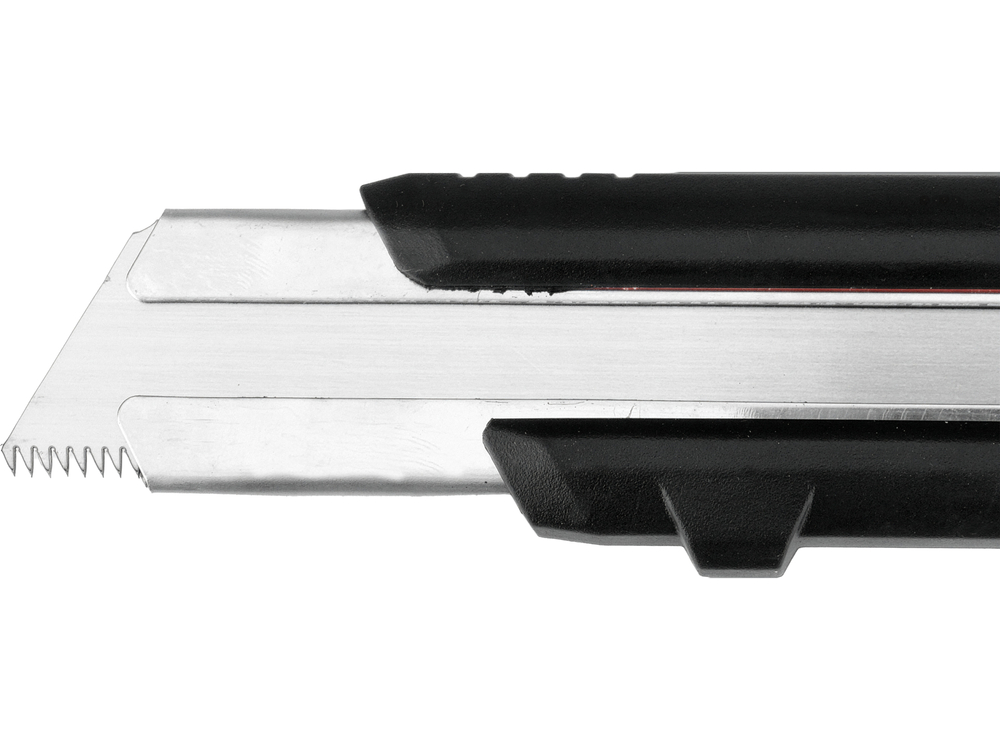 Nóż avec lame de scie conçu pour couper des matériaux fibreux et plastiques, où une lame lisse standard est limitée en efficacité. Le bord dentelé en acier SK5 facilite le démarrage de la coupe et limite le glissement de l'outil sur la surface. Le boîtier en ABS renforcé de caoutchouc TPR améliore la prise en main et la stabilité lors de l'utilisation.
