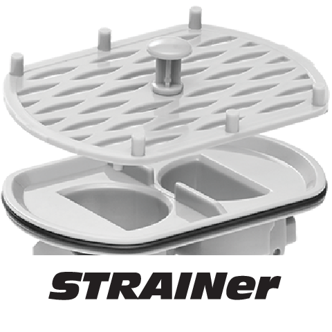 - STRAINer - ένα αποτελεσματικό και μακράς διάρκειας σουρωτήρι που αποτρέπει την απόφραξη της παγίδας και διευκολύνει τη συντήρηση της αποχέτευσης σε καθημερινή βάση,