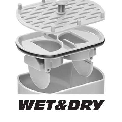 - WET&DRY - ένα ειδικό διάλυμα στο σιφόνι που εμποδίζει την είσοδο οσμών και ζωυφίων κατά τη διάρκεια της χρήσης καθώς και μετά το στέγνωμα,