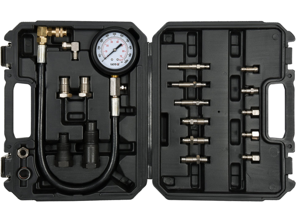 Επαγγελματικό κιτ για τη μέτρηση της πίεσης συμπίεσης στους κυλίνδρους των κινητήρων ντίζελ (diesel). Η μέτρηση μπορεί να γίνει μέσω των λαμπτήρων πυράκτωσης ή μέσω του εγχυτήρα. Σχεδιασμένο για επιβατικά αυτοκίνητα, φορτηγά και φορτηγά, συμπεριλαμβανομένων των αυτοκινήτων με κινητήρες TDI, HDI, SDI, DTI, JTD, DID με άμεσο και έμμεσο ψεκασμό.