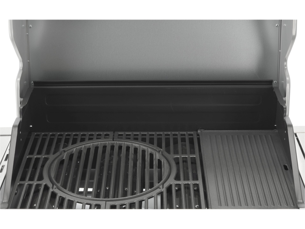 Μια ψησταριά αερίου 4+1 με μοντέρνο στυλ από ανοξείδωτο ατσάλι. Εξοπλισμένο με σχάρα χυτοσιδήρου 70 x 41,5 cmμε ραβδώσεις. Αφαιρούμενη κυκλική σχάρα (ø 30 cm) ενσωματωμένη στη ραβδωτή σχάρα. Τα πλαϊνά ράφια και το ευρύχωρο, κλειδώσιμο ντουλάπι διευκολύνουν την αποθήκευση μπαχαρικών και βασικών αξεσουάρ. Ο πλευρικός καυστήρας 2,2 kW επιτρέπει το μαγείρεμα και τη θέρμανση φαγητού σε κατσαρόλα ή τηγάνι. Τα πρόσθετα χαρακτηριστικά περιλαμβάνουν χώρο για μια φιάλη αερίου, ένα δοχείο από ανοξείδωτο χάλυβα που βρίσκεται σε ένα από τα πλευρικά ράφια και ένα ενσωματωμένο ανοιχτήρι μπουκαλιών.