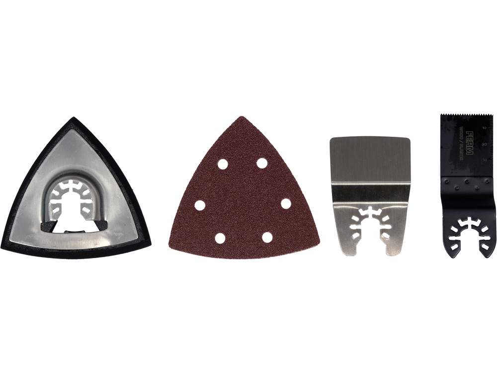 Ένα ευέλικτο εργαλείο που κάνει την ακριβή κοπή ξύλου και μετάλλου, την κοπή με βύθιση, την απόξεση καθώς και την επιφανειακή λείανση απλή και ασφαλή. Τα αξεσουάρ μπορούν να αλλαχθούν χωρίς εργαλεία χάρη στην κλειδαριά ασφαλείας. Χρησιμοποιείται ο δημοφιλής τύπος λεπίδας μισοφέγγαρου και το σετ περιλαμβάνει λεπίδες κοπής και ένα μαξιλάρι λείανσης με ανταλλακτικό γυαλόχαρτο. Το εργαλείο είναι ιδανικό για την ανακαίνιση επίπλων βεράντας, κιγκλιδωμάτων, την υποκοπή πάνελ MDF και κουφωμάτων πόρτας, αφήνοντας τις κομμένες άκρες αδιάσπαστες. Το πολυεργαλείο παράγει ελάχιστη σκόνη, σε σύγκριση με συσκευές όπως ο γωνιακός λειαντήρας ή το δισκοπρίονο.