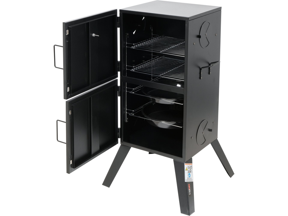 Ένα φορητό καπνιστήριο κήπου εξοπλισμένο με δύο μπολ και δύο σχάρες. Σας επιτρέπει να προετοιμάσετε μόνοι σας παραδοσιακά προϊόντα: αλλαντικά, λουκάνικα, ψάρια και τυριά που καπνίζονται με 2 μεθόδους - ζεστά και κρύα. Μέχρι και τέσσερις αεραγωγοί επιτρέπουν τον έλεγχο της ροής της φωτιάς και του καπνού.
