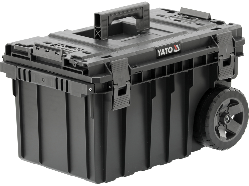 Μεγάλη εργαλειοθήκη με ρόδες. Εξοπλισμένο με δίσκο εργαλείων με μεγάλη επιφάνεια και μικρό βάθος, αφήνοντας άφθονο χώρο συσκευασίας. Δύο τροχοί υπερύψωσης τοποθετημένοι σε μεταλλικό άξονα επιτρέπουν την ασφαλή μεταφορά σετ κουτιών και οργανωτών. Μια τηλεσκοπική λαβή αλουμινίου που εκτείνεται από το πλάι διευκολύνει την άνετη πρόσβαση στο εσωτερικό του κουτιού. Το κιβώτιο είναι εφοδιασμένο με εύκαμπτη στεγανοποίηση για να παρέχει προστασία από την εισροή σκόνης και νερού. Οι σύνδεσμοι στο καπάκι επιτρέπουν τη σύνδεση με άλλα μοντέλα του συστήματος S1 και S12. Ένα επεκτεινόμενο πλαίσιο με απλό μηχανισμό ασφάλισης εγγυάται σταθερή καθοδήγηση προς τα εμπρός και προς τα πίσω. Η προεξέχουσα λαβή είναι επίσης ένα σταθερό μέρος για να τοποθετήσετε τον εσωτερικό δίσκο.