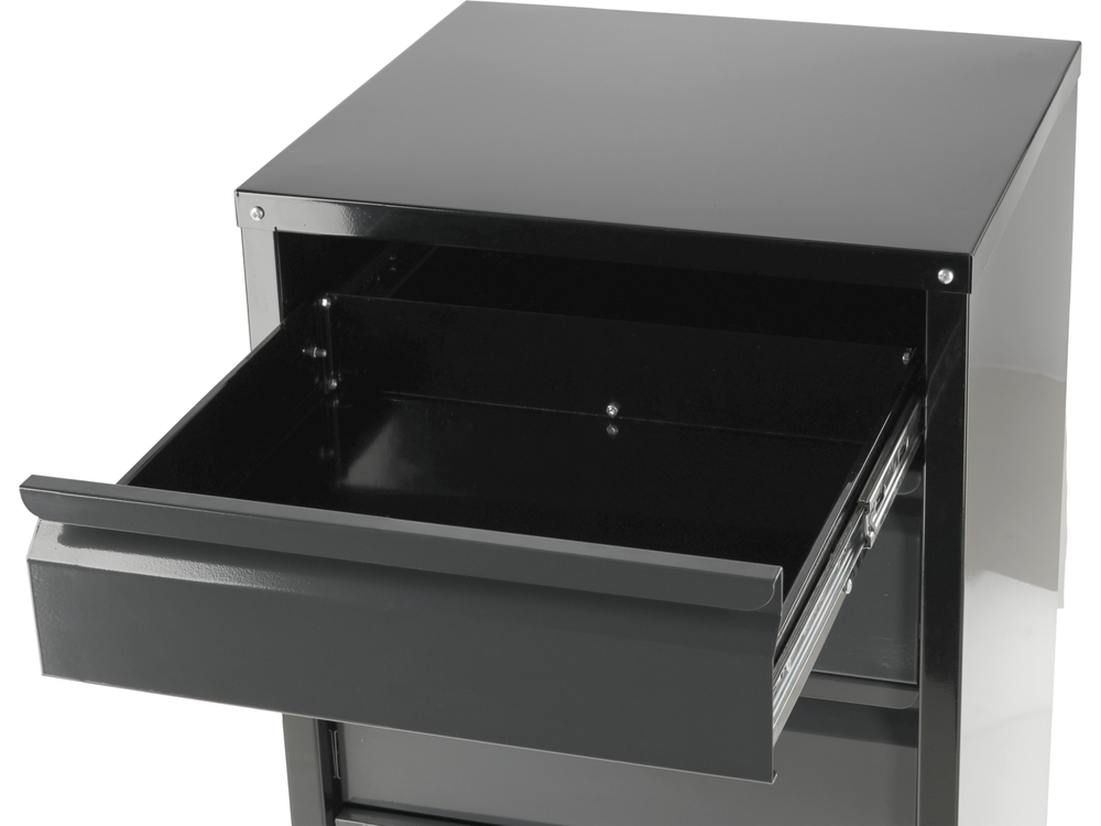 Ένα ντουλάπι συνεργείου που θα σας βοηθήσει να διατηρήσετε το γκαράζ, το εργαστήριο ή το κέντρο εξυπηρέτησης αυτοκινήτων τακτοποιημένο. Ντουλάπι από μαύρο λακαρισμένο χαλυβδοέλασμα. Το κομψό φινίρισμα το καθιστά κατάλληλο για κάθε εργαστήριο. Επιτρέπει τη δημιουργία ενός άνετου χώρου εργασίας και παρέχει ασφαλή αποθήκευση εργαλείων. Το ντουλάπι αποτελείται από ένα σώμα, το οποίο στεγάζει τέσσερα συμπαγή συρτάρια με ρουλεμάν. Το ντουλάπι πρέπει να συναρμολογηθεί από τον εαυτό σας.