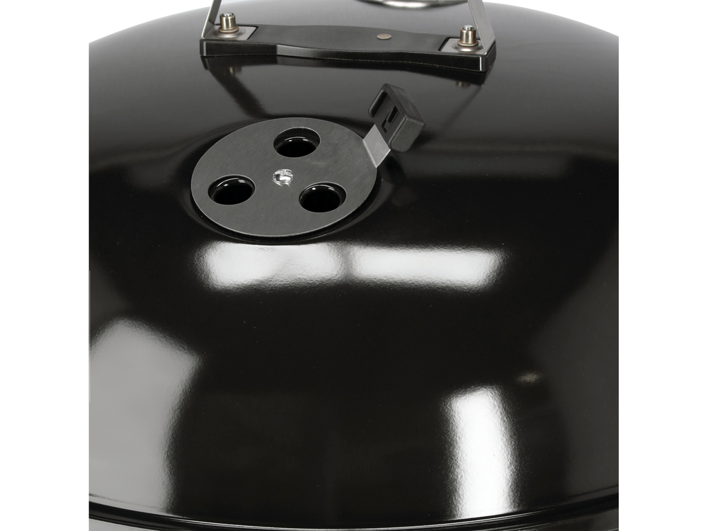 Ατσάλινη ψησταριά με επιχρωμιωμένη σχάρα και εστία φωτιάς που κλείνει με καπάκι. Εξοπλισμένο με άνοιγμα για τη ρύθμιση της κυκλοφορίας του αέρα για συνεχή έλεγχο του επιπέδου λάμψης και της θερμοκρασίας. Η ελαφριά κατασκευή και οι τροχίσκοι παρέχουν την ελευθερία να μετακινήσετε την ψησταριά οπουδήποτε στη βεράντα ή στον κήπο.