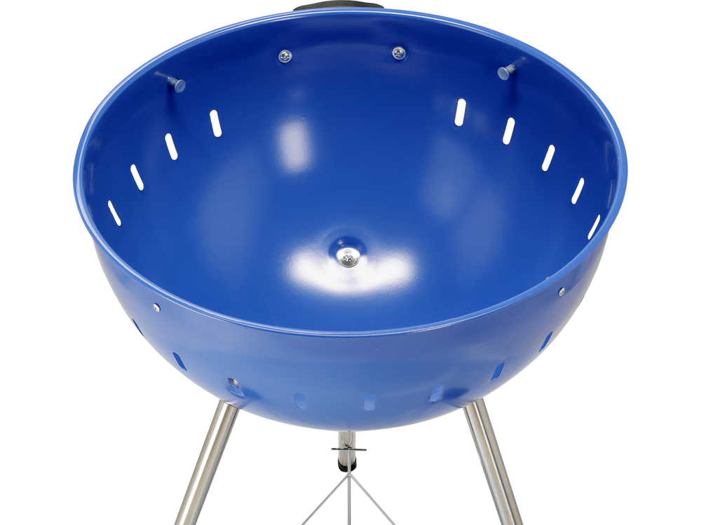 Ατσάλινη ψησταριά με επιχρωμιωμένη σχάρα και εστία φωτιάς που κλείνει με καπάκι. Εξοπλισμένο με άνοιγμα για τη ρύθμιση της κυκλοφορίας του αέρα για συνεχή έλεγχο του επιπέδου λάμψης και της θερμοκρασίας. Η ελαφριά κατασκευή και οι τροχίσκοι παρέχουν την ελευθερία να μετακινήσετε την ψησταριά οπουδήποτε στη βεράντα ή στον κήπο.