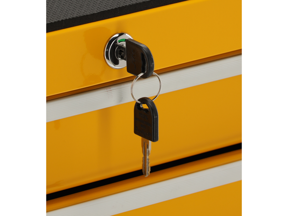 • κεντρικό κλείδωμα με δύο κλειδιά και κλείδωμα συρταριών προστατεύουν τα αποθηκευμένα εργαλεία από μη εξουσιοδοτημένη πρόσβαση