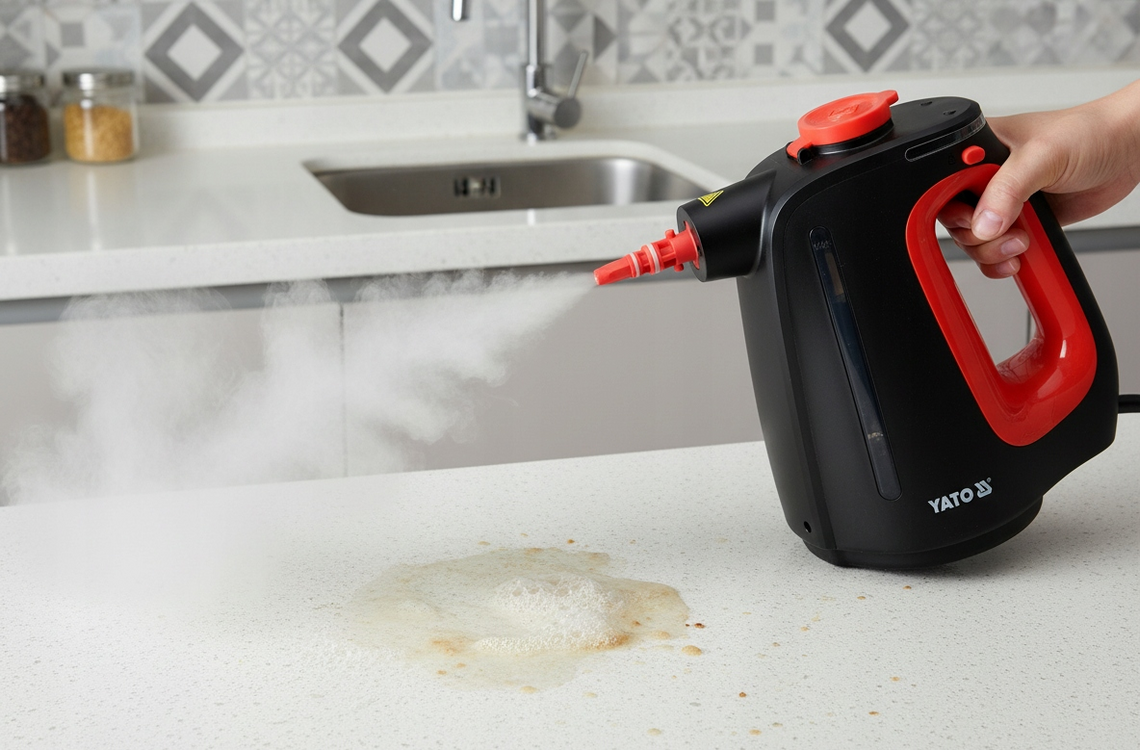 Αποτελεσματικός ατμοκαθαριστής με ισχύ 1350 W και θερμοκρασία ατμού έως 110°C αφαιρεί αποτελεσματικά τις βρωμιές, τα αποθέματα ή το λίπος από διάφορες επιφάνειες, χωρίς τη χρήση χημικών προϊόντων. Η ελαφριά κατασκευή και η περιστρεφόμενη ακίδα εξασφαλίζουν την άνεση κατά την εργασία, ενώ το σετ πρακτικών ακροφυσίων επιτρέπει το αποτελεσματικό καθάρισμα παραθύρων, στοιχείων στοιχείων, ταπετσαρίας ή δύσκολα προσβάσιμων θέσεων. Ο χωρητικός δοχείο νερού 0,55 λίτρων και ο χρόνος λειτουργίας του καθαριστή 18 λεπτά επαρκούν για τον καθαρισμό διαφόρων στοιχείων στο σπίτι ή στο αυτοκίνητο σε έναν κύκλο. Η περιορισμένη χρήση απορρυπαντικών καθιστά αυτή τη λύση ασφαλή για οικογένειες με παιδιά, αλλεργικούς και ιδιοκτήτες κατοικιδίων.