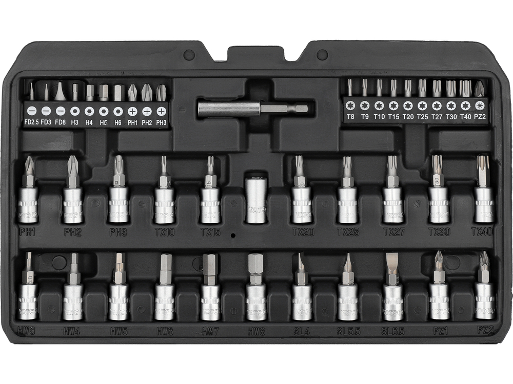 Σετ εργαλείων που αποτελείται από 68 στοιχεία προσαρμοσμένα για χρήση σε αυτοκινητικές εργασίες, μηχανικές εργασίες, βιομηχανικές και οικιακές εργασίες.