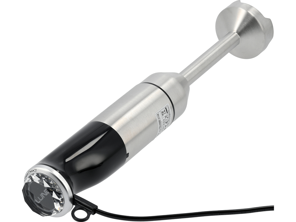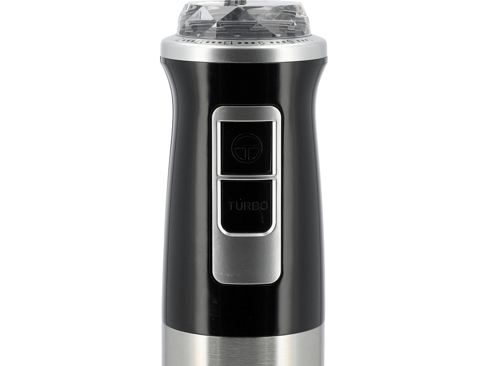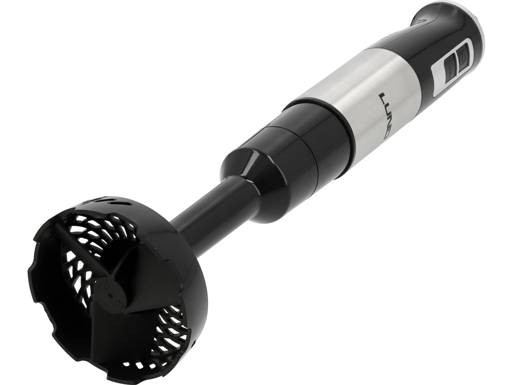 - Χειρός μπλέντερ με τετραπλή, ανοξείδωτη λεπίδα - εξασφαλίζει ομοιόμορφη ανάμειξη και λεία υφή, ιδανική για σούπες κρέμα, σάλτσες, πουρέ και κοκτέιλ