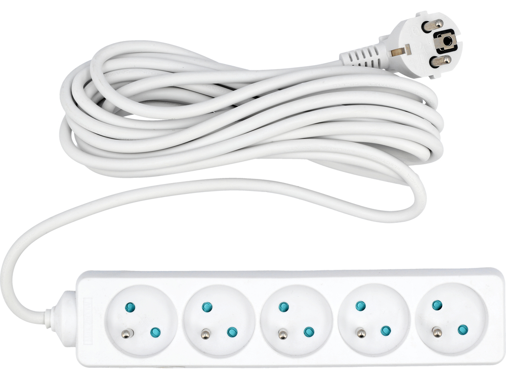 ELEKTROMOS HOSSZABBÍTÓ KÁBEL, FEHÉR, 5 ALJZAT FÖLDELÉSVEL, 5M