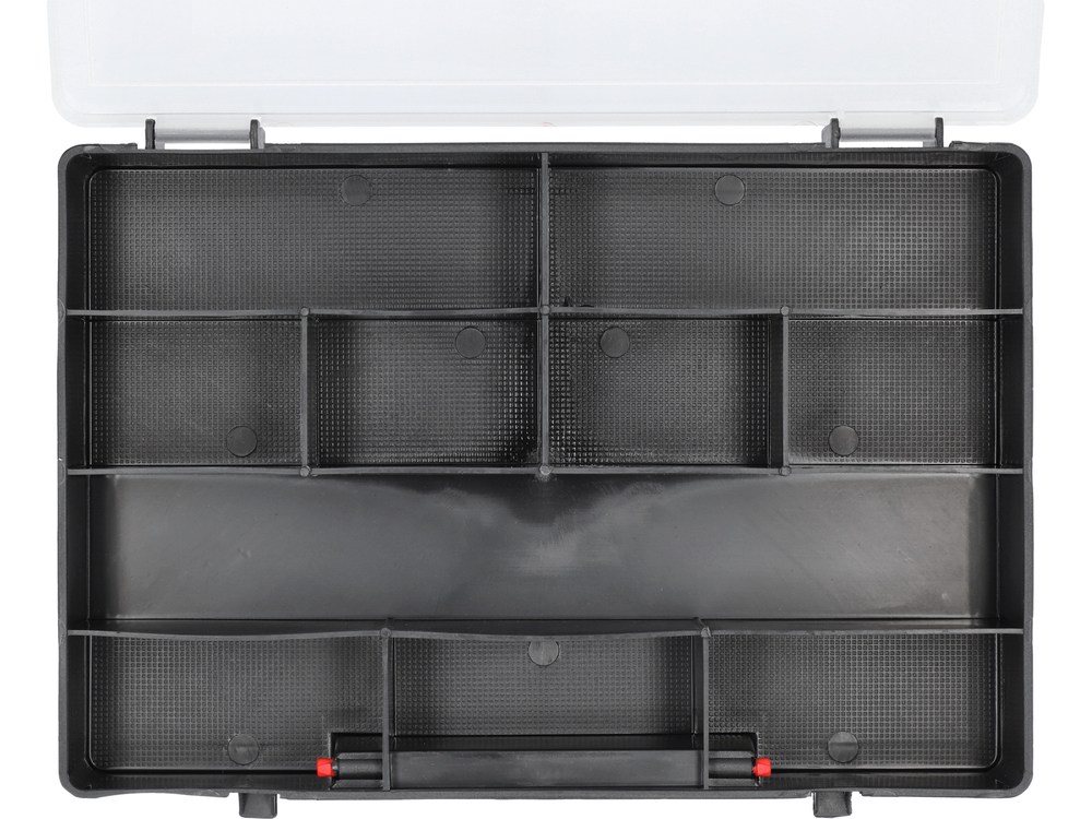 30x22 cm-es szervező műanyag fogantyúval. Kisebb tárgyak, pl. kisebb kötőelemek, pótalkatrészek és szerszámok tárolására szolgál. Kényelmes hordozófogantyúval. Hasznos otthonra, garázsba, műhelybe stb.