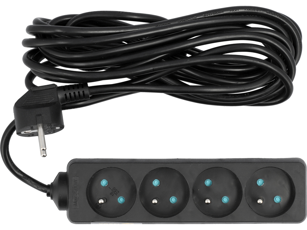 Klasszikus hosszabbító kábel földelt változatban. Műanyag aljzatburkolat. Fekete színű.