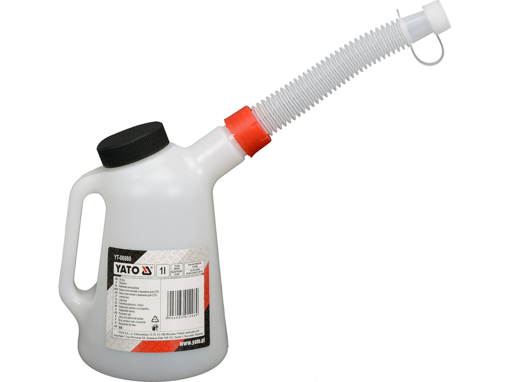 - tartós, folyadékálló PE műanyagból készült, praktikus, rugalmas tölcsérrel és csavaros fedéllel.
