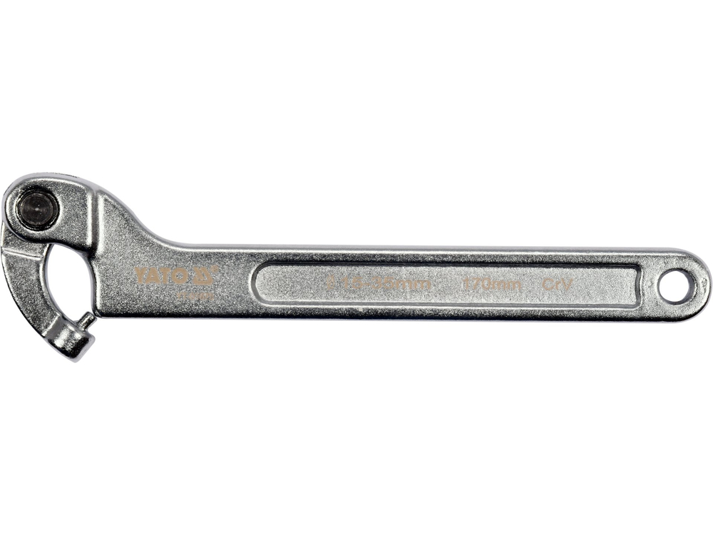 Nagy teherbírású króm-vanádium acélból készült kerek csavaros, csuklós kampós kulcs. Szaténkrómozott felületkezeléssel rendelkezik. Alkalmas karimák, gyűrűk és csapágyak szervizelésére.