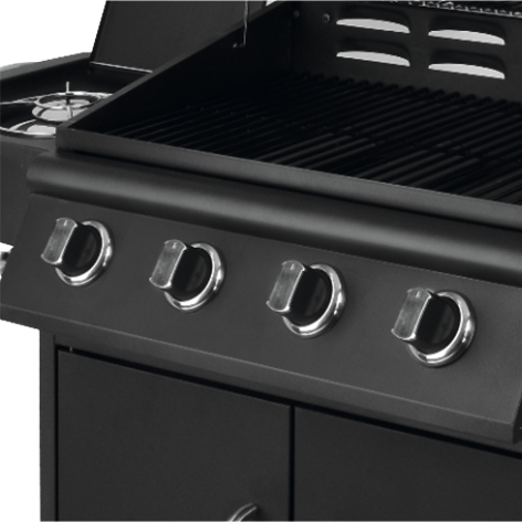 Professzionális 4+1 gázgrill az ételek szabadtéri elkészítéséhez, kényelmes beállítással az ételek tökéletes sütéséhez. Felszerelve 4 főégővel és 1 mellékégővel, összesen 16 kW teljesítményű. Az oldalsó polcok és a tágas, zárható szekrény megkönnyítik a fűszerek és a nélkülözhetetlen tartozékok tárolását.