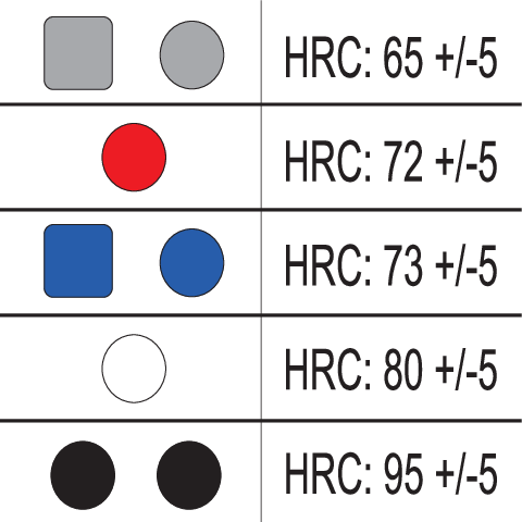 60-70, 67-77, 68-78, 75-85, 90-100 HRC