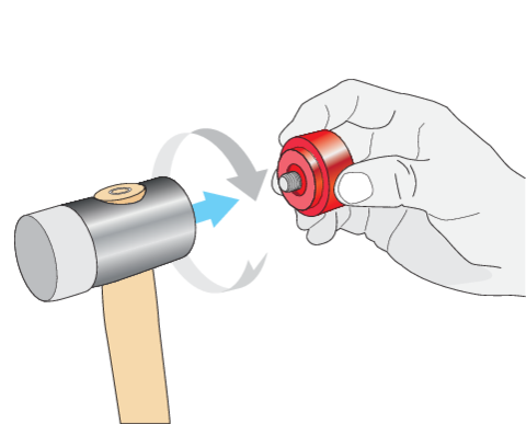 Összeszerelő kalapács 8 cserélhető, különböző keménységű hegyekkel.
