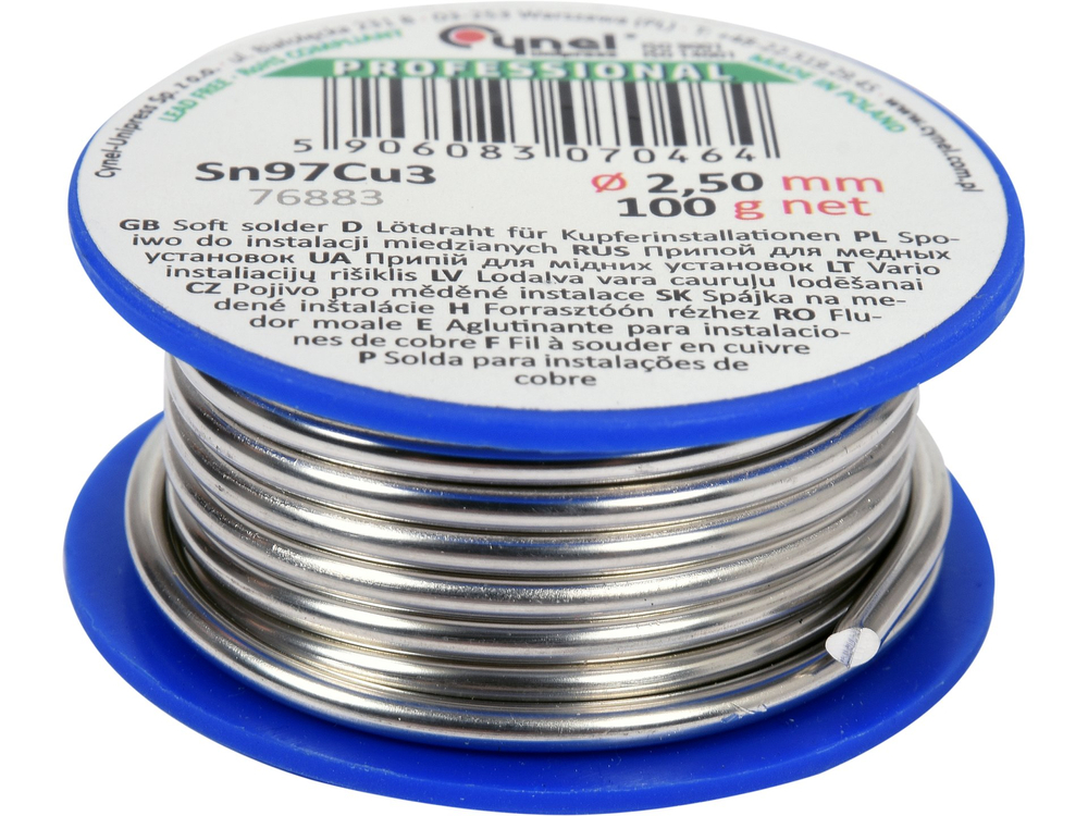 KÖTŐSZER, FORRSZÍTÓVEZETÉK RÉZ SZERELÉSÉHEZ 2,5MM, 100G, SN97CU3 ORSÓRA