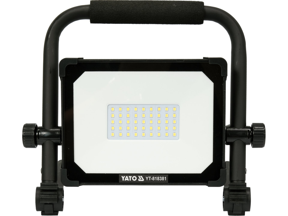 Stabil, állítható állványon elhelyezett, nagy teljesítményű SMD LED-ekkel ellátott lapos reflektor. Az IP65 védelmi osztály lehetővé teszi a kültéri használatot is.