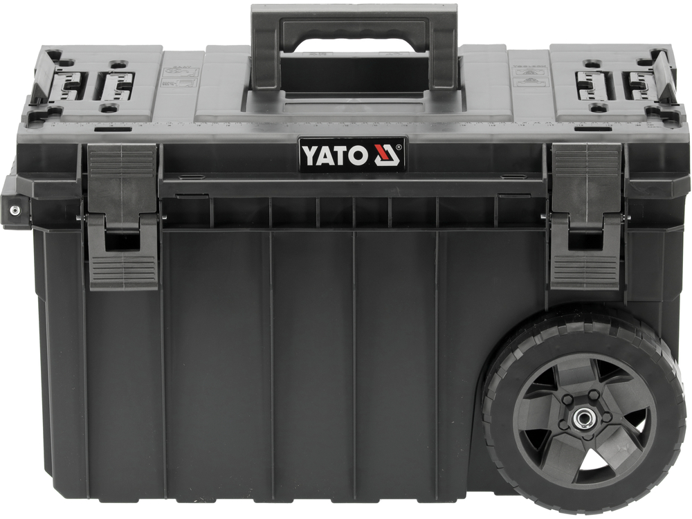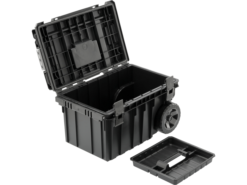 Nagy, kerekes szerszámosláda. Nagy felületű és sekély mélységű szerszámtálcával szerelve, amely sok pakolóhelyet hagy. A fémtengelyre szerelt két felhajtott kerék lehetővé teszi a dobozkészletek és szervezők biztonságos szállítását. Az oldalról kinyúló teleszkópos alumínium fogantyú megkönnyíti a láda belsejébe való kényelmes bejutást. A láda rugalmas tömítéssel van ellátva, amely védelmet nyújt a por és a víz behatolása ellen. A fedélen található csatlakozók lehetővé teszik az S1 és S12 rendszer más modelljeihez való csatlakoztatást. Az egyszerű reteszelési mechanizmussal ellátott kihúzható keret stabil előre- és hátrameneti vezetést biztosít. A kihúzható fogantyú stabil helyet biztosít a belső tálca elhelyezéséhez is.