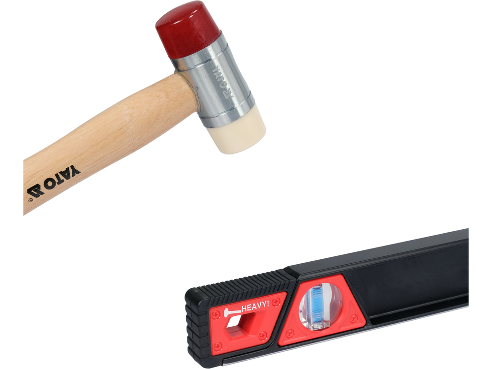 Robusztus, ütésálló alumínium vízmérték. Két nagy fogantyú megkönnyíti a mérést. A vízmérték rugalmas, ütésálló ütközésálló ütközőkkel védett végei lehetővé teszik a kalapáccsal való ütögetést. A vízmérték három fiolával van felszerelve: függőleges, vízszintes, 45 fokos. A maratott talpazat 5 mágnessel rendelkezik.