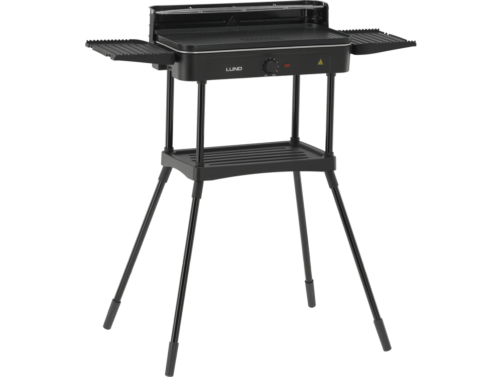 LUND elektromos grillsütő húsok, halak és zöldségek elkészítéséhez. A hullámos főzőlap lehetővé teszi nagy mennyiségű étel elkészítését. Egy kiegészítő fűtőrács növeli a készülék funkcionalitását. A grill használható a kertben, a teraszon, de beltérben is. Az alsó polc és a két oldalsó polc további helyet biztosít a kiegészítők, fűszerek és italok számára. A rozsdamentes acél fűtőcső gyors felmelegedést és egyenletes hőeloszlást biztosít. A magasabb perem megkönnyíti a grill környékének tisztán tartását.