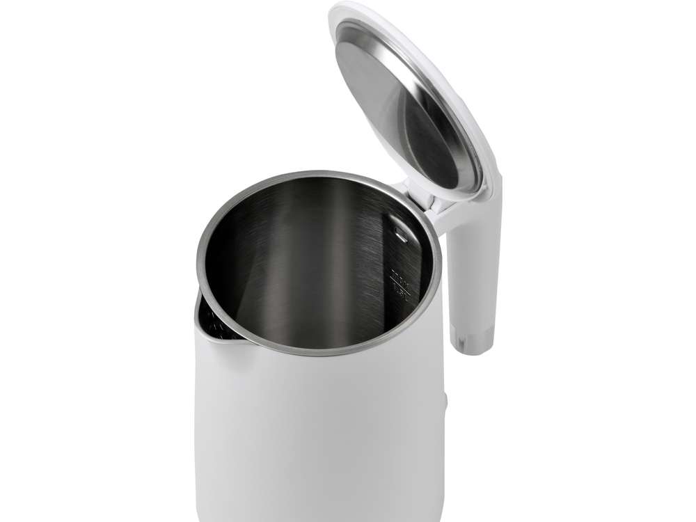 Elektromos vízforraló 1,5 literes űrtartalommal. A vízforraló minimalista formájával és egyszínűségével tökéletesen illeszkedik a modern belső terekbe. A vízforraló burkolata dupla falú. A belső fal és a fedél rozsdamentes acélból készült, míg a külső részt színes polipropilén ház borítja. További biztonsági funkciók, mint például az automatikus kikapcsolás és a túlmelegedés elleni védelem, növelik a biztonságot. A nagy nyílás megkönnyíti a víz kiöntését és a tisztítást, a kivehető hálós szűrő pedig tisztán tartja a vizet.