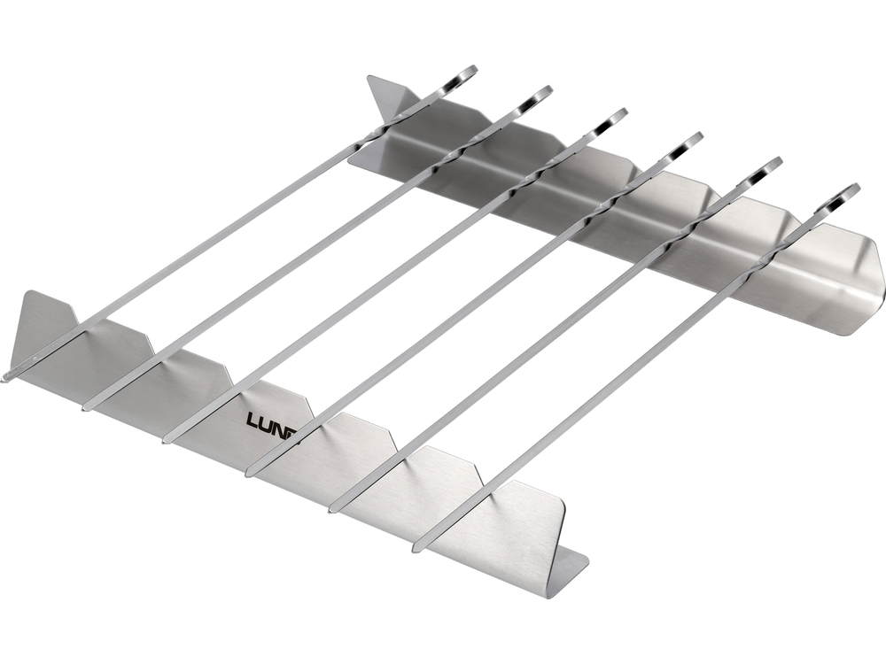 6 acél nyárs stabil talppal a kényelmes elhelyezéshez és forgatáshoz az ételekhez