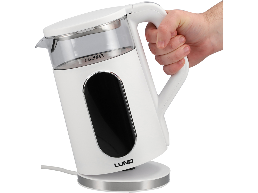 A forralónak kényelmes 360°-os forgatható talpa van, automatikus kikapcsolással és túlmelegedés elleni védelemmel, növelve a használat biztonságát. A nagy nyílás megkönnyíti a víz öntését, és a kivehető szűrő háló tisztaságának megőrzését szolgálja.