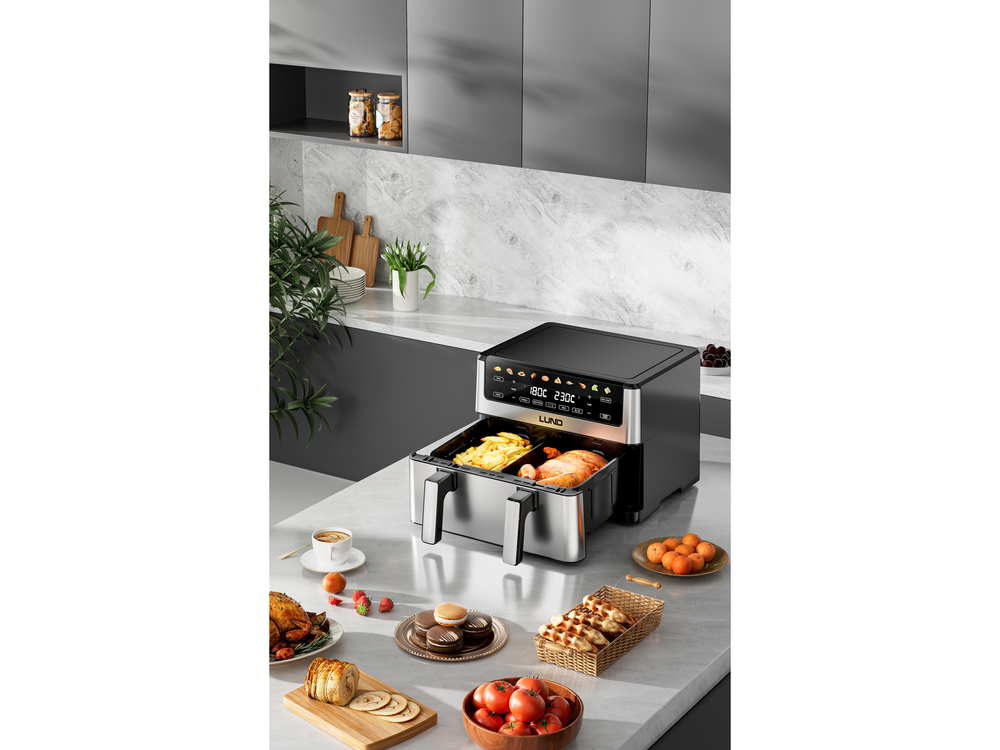 Az olvadás, grillezés, sütés vagy szárítás funkciói lehetővé teszik több különböző eszköz helyettesítését egyetlen készülékkel, a nem tapadó bevonat pedig megkönnyíti a tisztítást. Ez az ideális megoldás azoknak, akik értékelik a házi főzést, de nem szeretnének órákat a konyhában tölteni. A fritőz rendelkezik egy 90 perces időzítővel és túlmelegedés elleni védelemmel, teljes kontrollt biztosítva a feldolgozási folyamat felett, anélkül, hogy folyamatosan figyelné az ételt vagy aggódna a leégett miatt. Ezenkívül a hőmérséklet fenntartás funkciója lehetővé teszi, hogy az ételek melegen maradjanak, és készen álljanak az azonnali felszolgálásra, amikor csak kedved van hozzá.